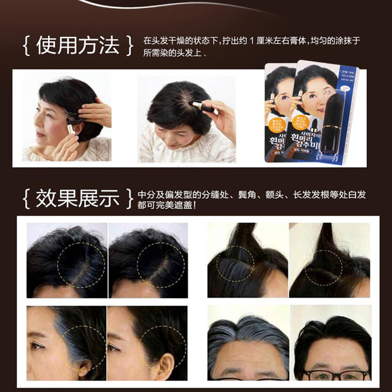 Korean cuttlefish sauce disposable lipstick hair dyeing pen permanent pure black hair dyeing stick vegetable paste to cover white hair