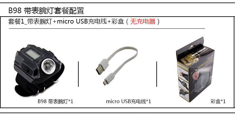 B98 with watch light LED lamp beads built-in rechargeable lithium battery electronic watch flashlight outdoor watch flashlight