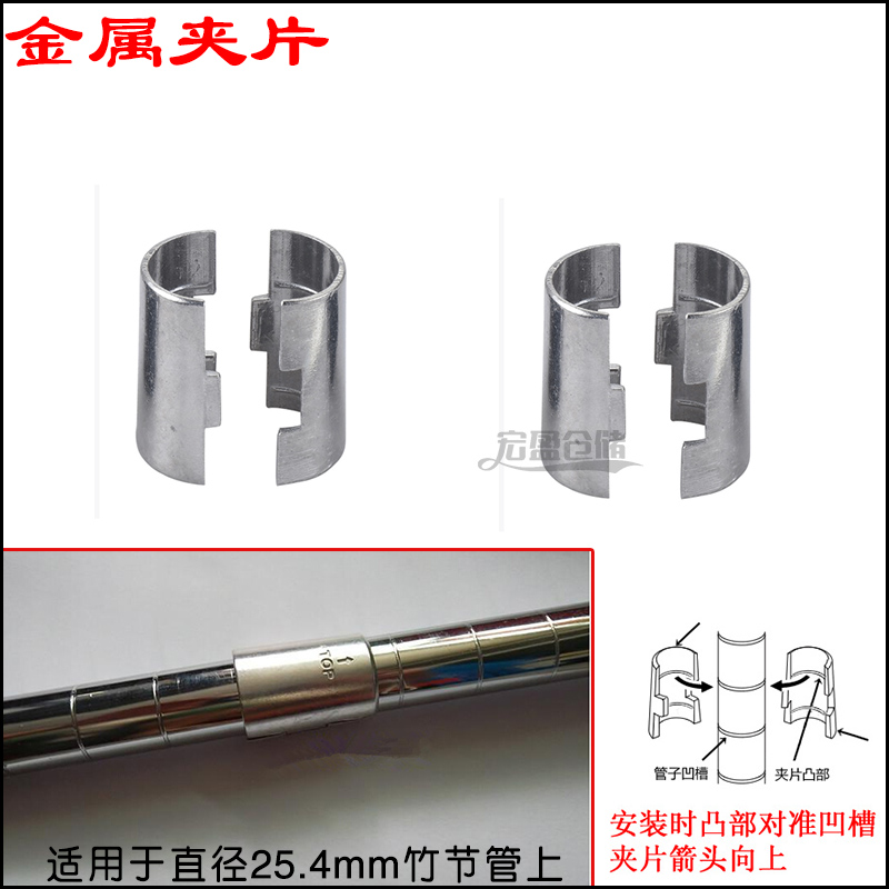 Chrome plated shelf accessories Metal clip plastic snap for bamboo tube 25 4MM bamboo tube column connector