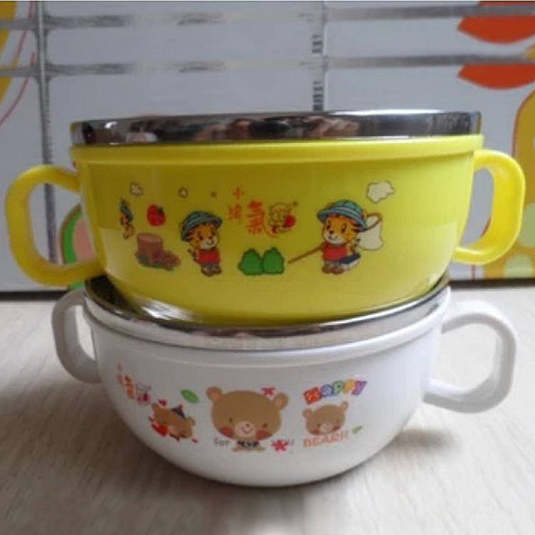 Small naughty baby cute cartoon double ear bowl with lid baby food grade stainless steel large number insulated bowl with spoon
