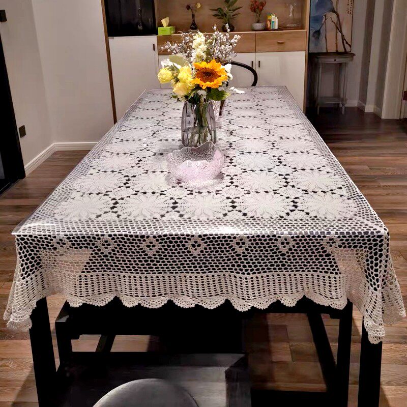 Auspicious home foreign trade handmade crochet lace 637 tablecloth Nordic pastoral tablecloth rectangular American piano bed flag