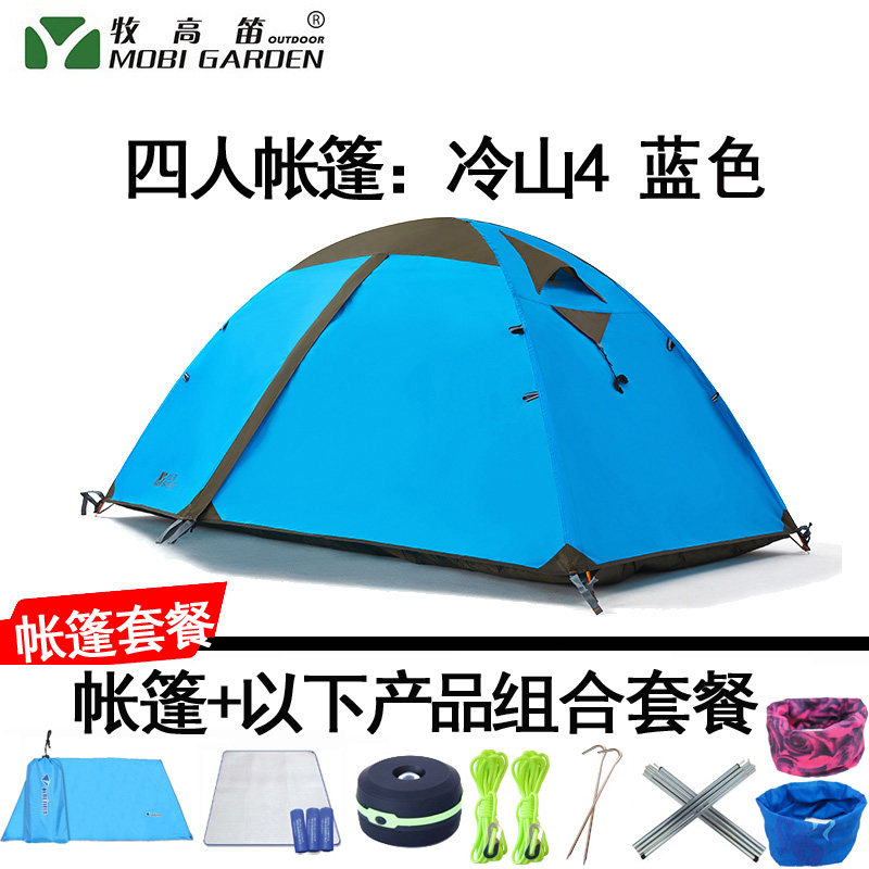 Mu Gaodi tent outdoor 3-4 people Cold mountain 4 double-layer aluminum pole with foyer four-season camping tent outdoor 2 people