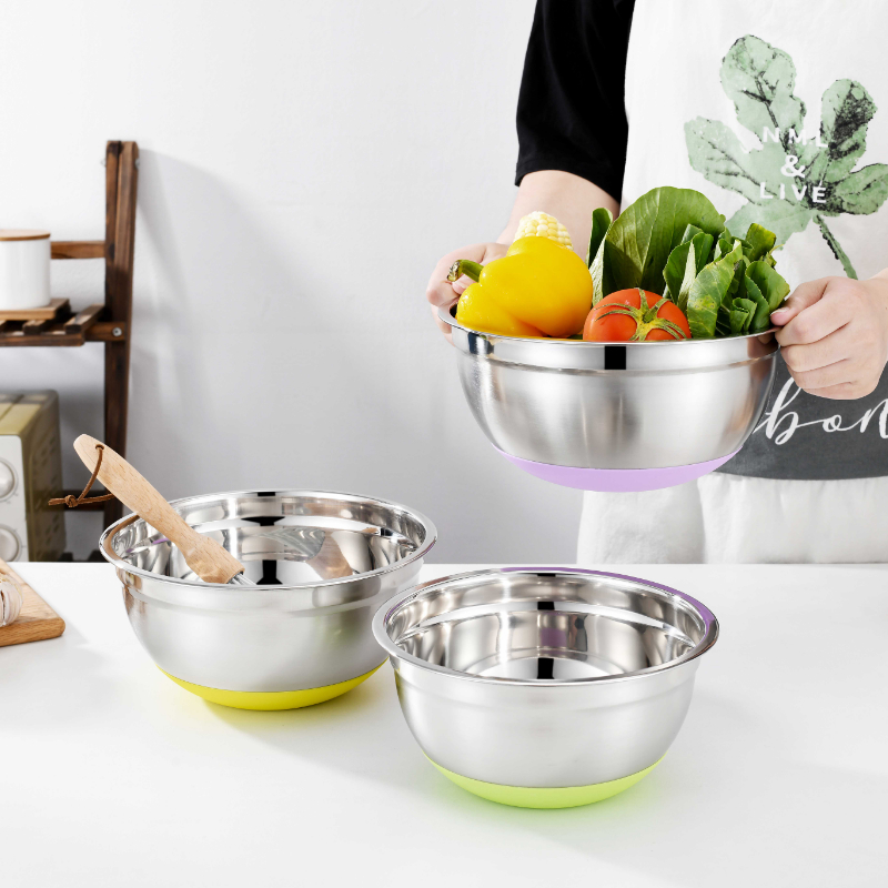 Baking thickening deepens stainless steel silicone bottom anti-splash anti-slip anti-egg pelvic cream stirring and washout basins
