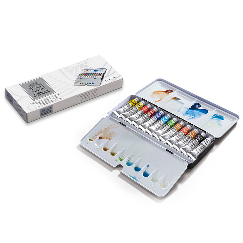 Windsor Newton French imported professional grade watercolor paint Wenyi watercolor paper combination set Enamel 12 colors 24 colors full block tube branch set Metal black box