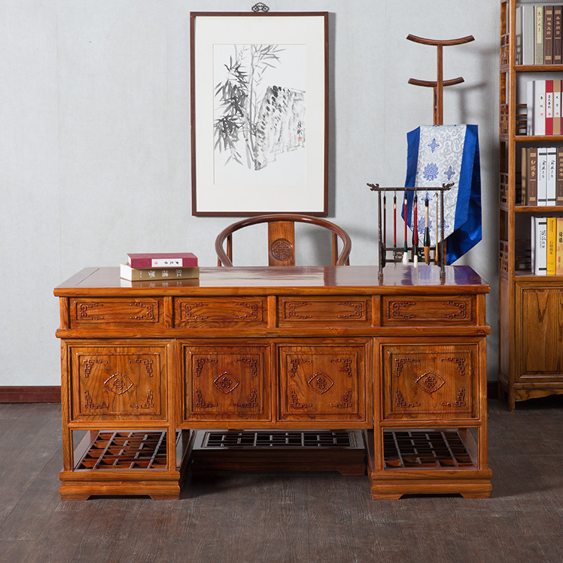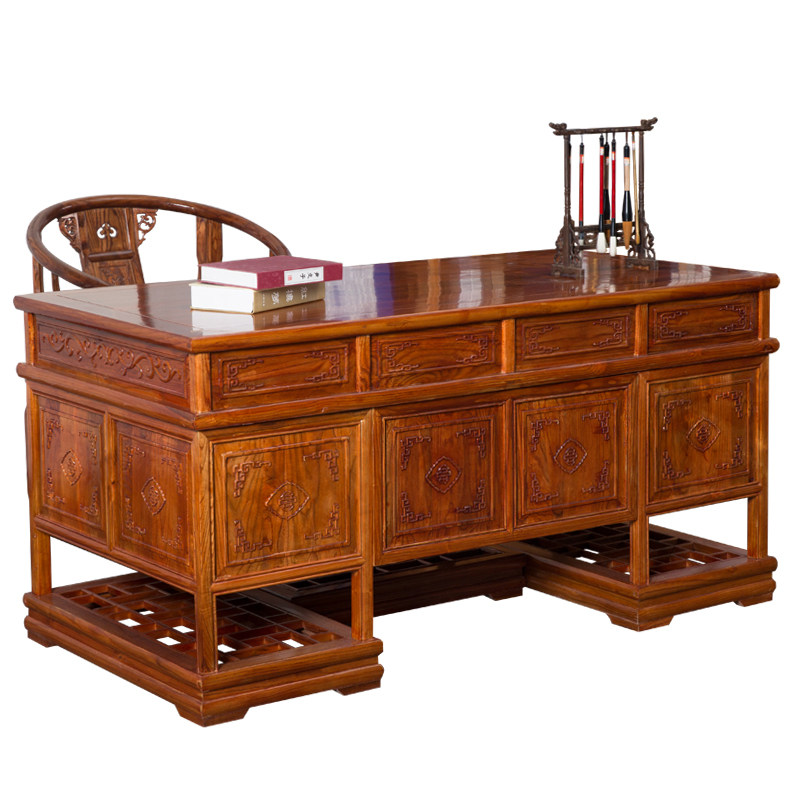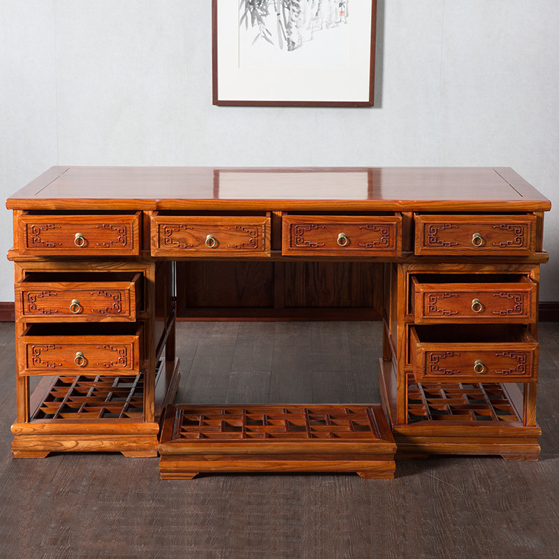 Solid wood desk 1 8 m boss Taichung-style traditional Chinese medicine consultation desk desk desk desk-desk elm wood carving flower large class desk