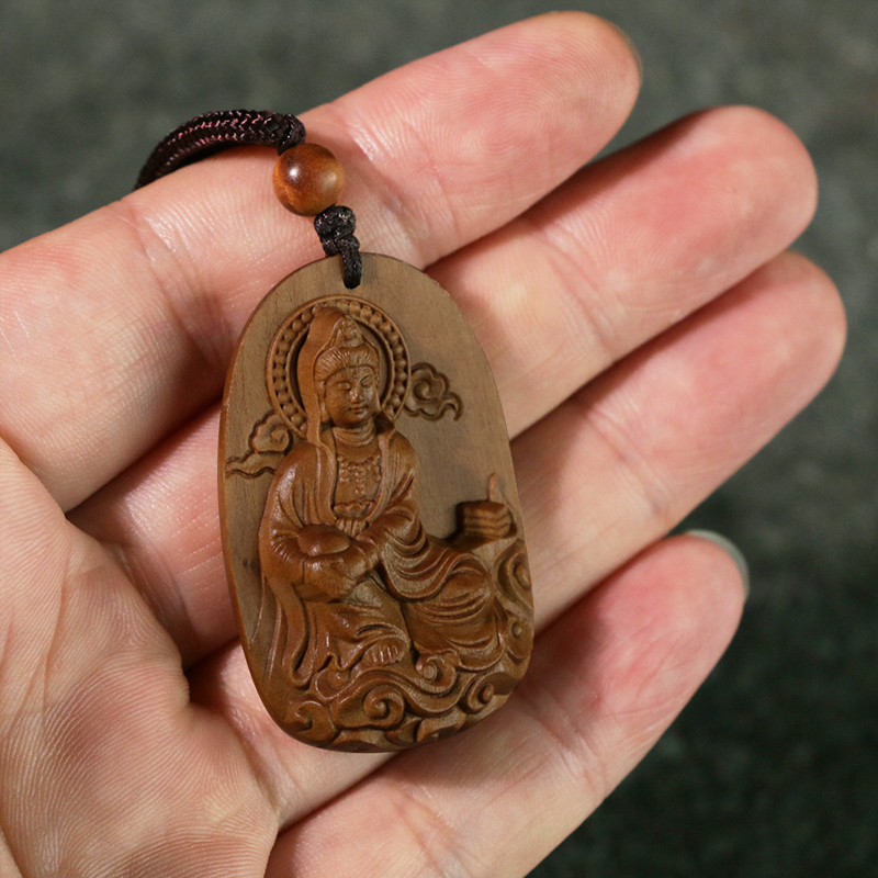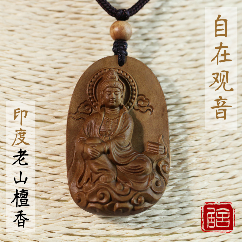 Fidelity India Laoshan Sandalwood Pendant Engraving Craft Pendant Necklace Pendant Necklace Men And Women Ornaments At Ease of Guanyin