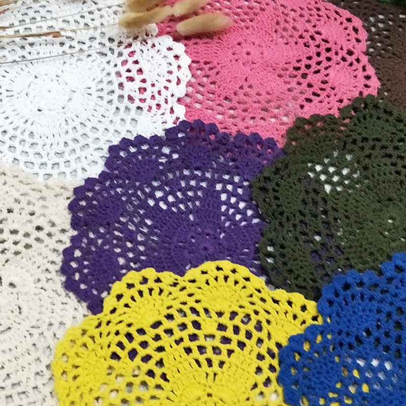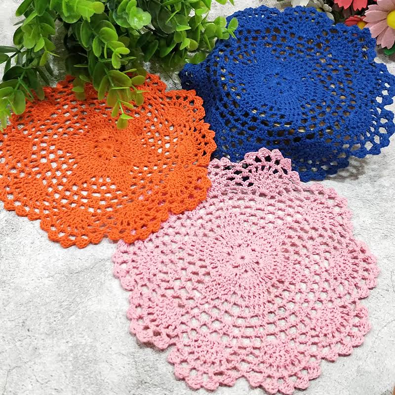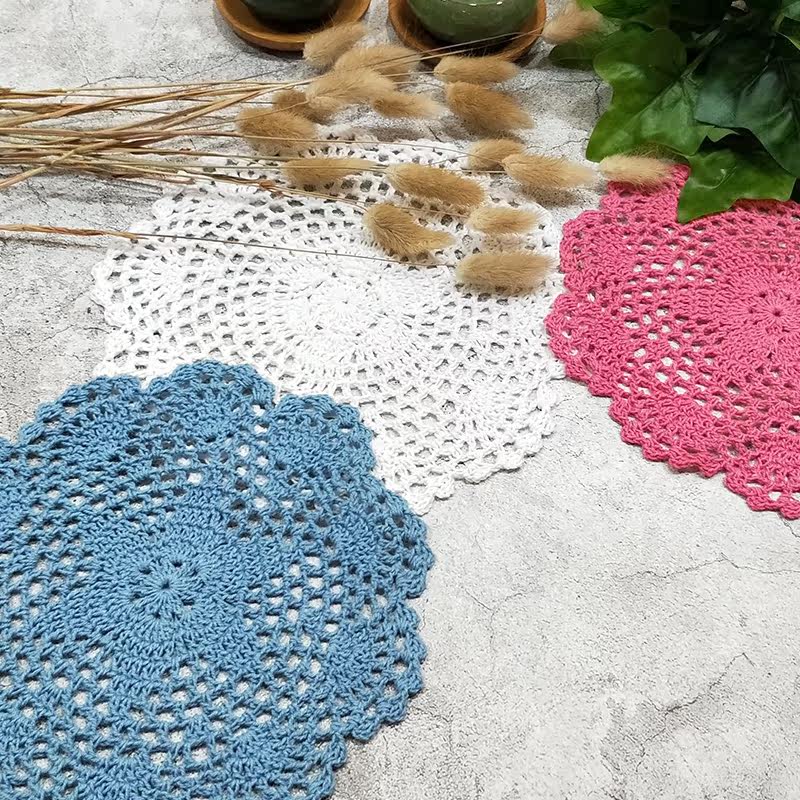 Creative crystal handmade crochet coaster Hollow decoration pad Pastoral crochet coaster Vase pad shooting props