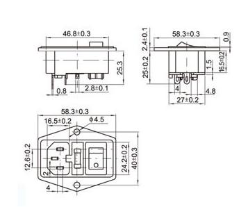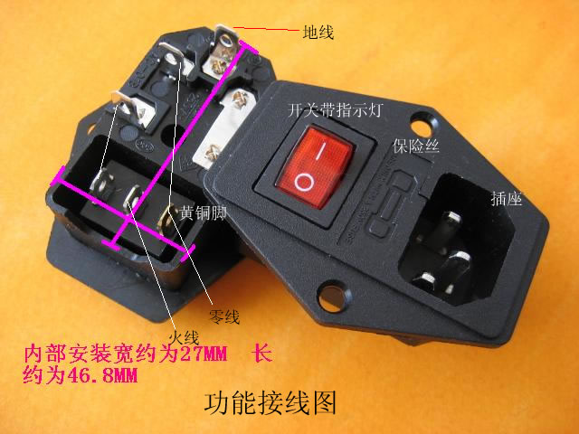 Three-in-one 220v power outlet kcd boat switch with lamp fuse box Three-pin pin word copper foot DIY