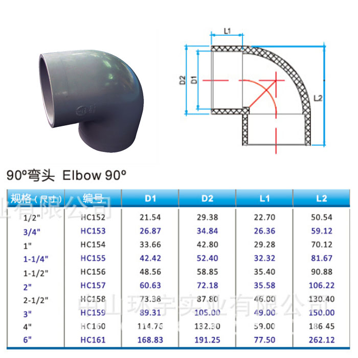 Ring Woo Anchor Tag Day Mark Ying Grey PVC90 Degree Elbow Industry Special Plastic Pipe Fittings