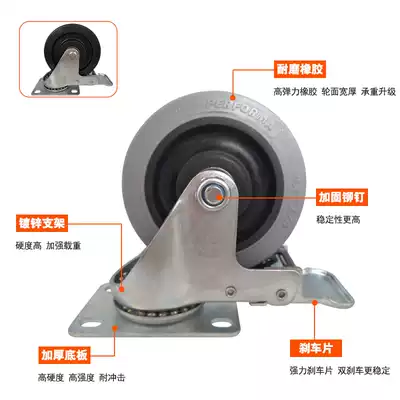 3 inch anti-static brake caster universal wheel conductive wheel rubber silent wheel double bearing steering wheel 4 inch single wheel