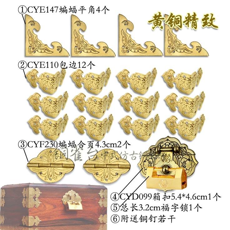Chinese lock Antique old camphor wood box Copper accessories Brass corner Ming and Qing Mahogany jewelry box Hardware accessories