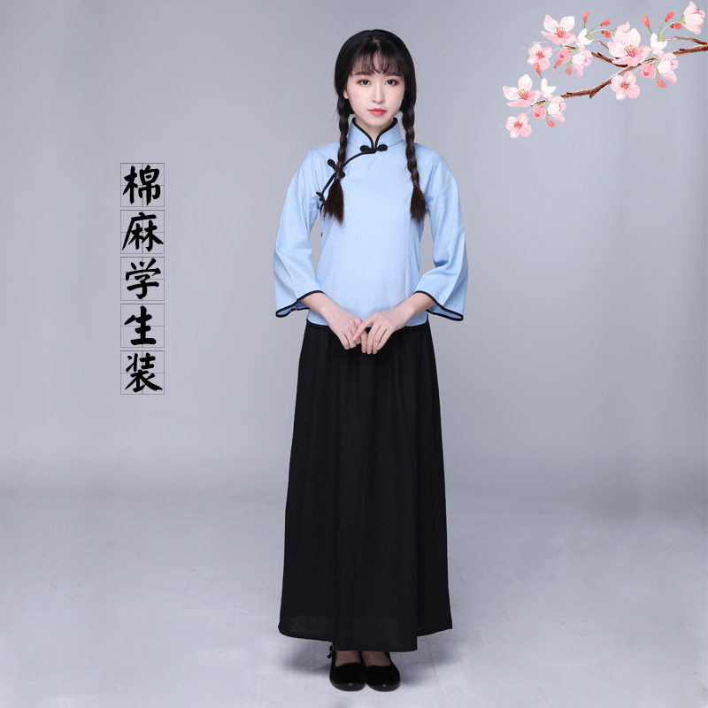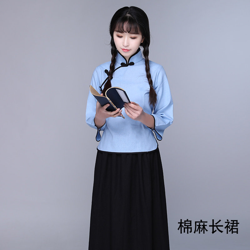 Blue pure cotton short dress blue pure cotton medium dress blue pure cotton long dress blue cotton linen in blue cotton linen long skirt black Zhongshan dress (size bigots recommended to consult customer service) white (size meta-sized