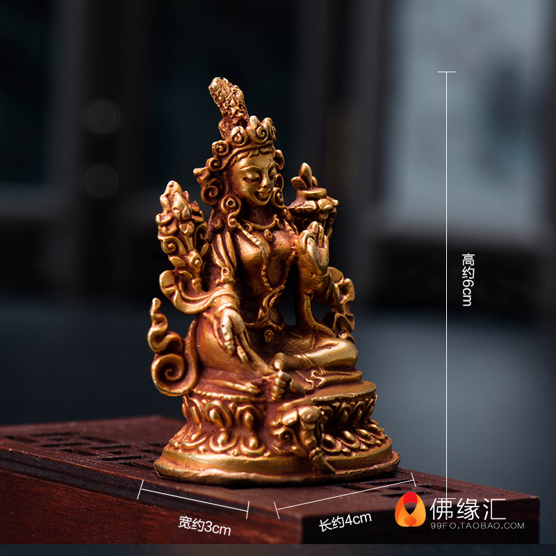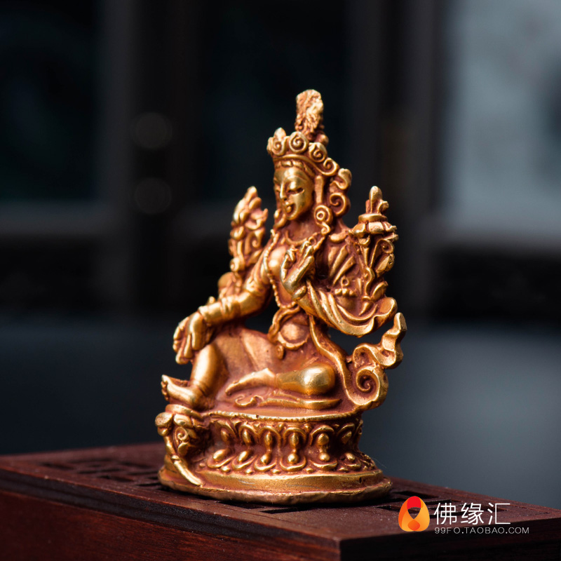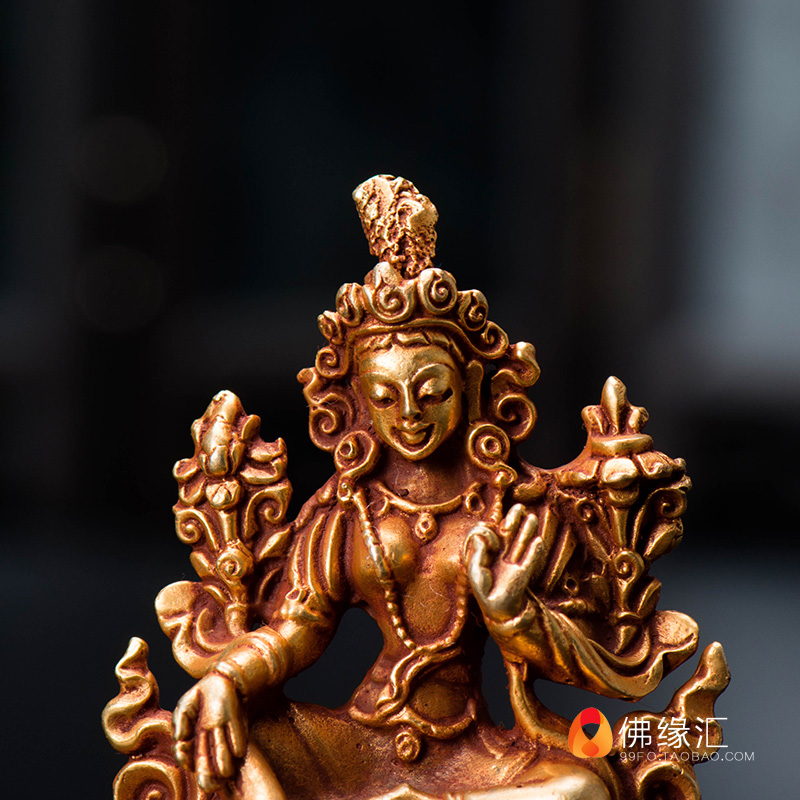 Buddha Yuanhui Green Mother Buddha statue Nepalese handmade full gilt copper portable Buddha small Buddha Statue 5 5cm