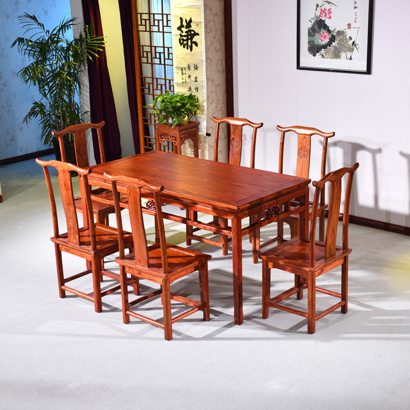 Ming and Qing antique complete elm furniture panel long dining chair classical calligraphy and painting table restaurant table dual-purpose table