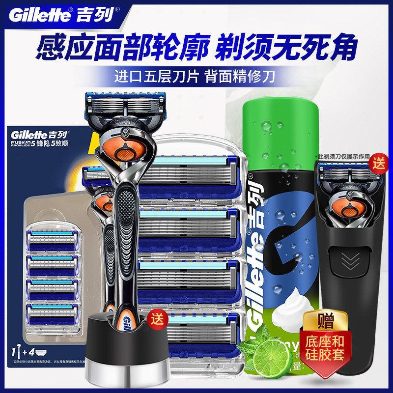 Gillette front hidden Zhishun shaving shaving knife Manual non-Gillette front speed 5-layer blade head magnetic knife holder male