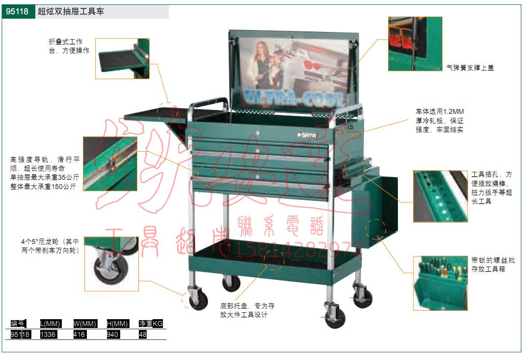 Sata Sida ultra-dazzling double drawer tool car 95118
