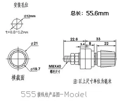 555 all-copper terminal block M8 8mm copper grounding column Inverter lithium battery terminal Welding machine terminal block