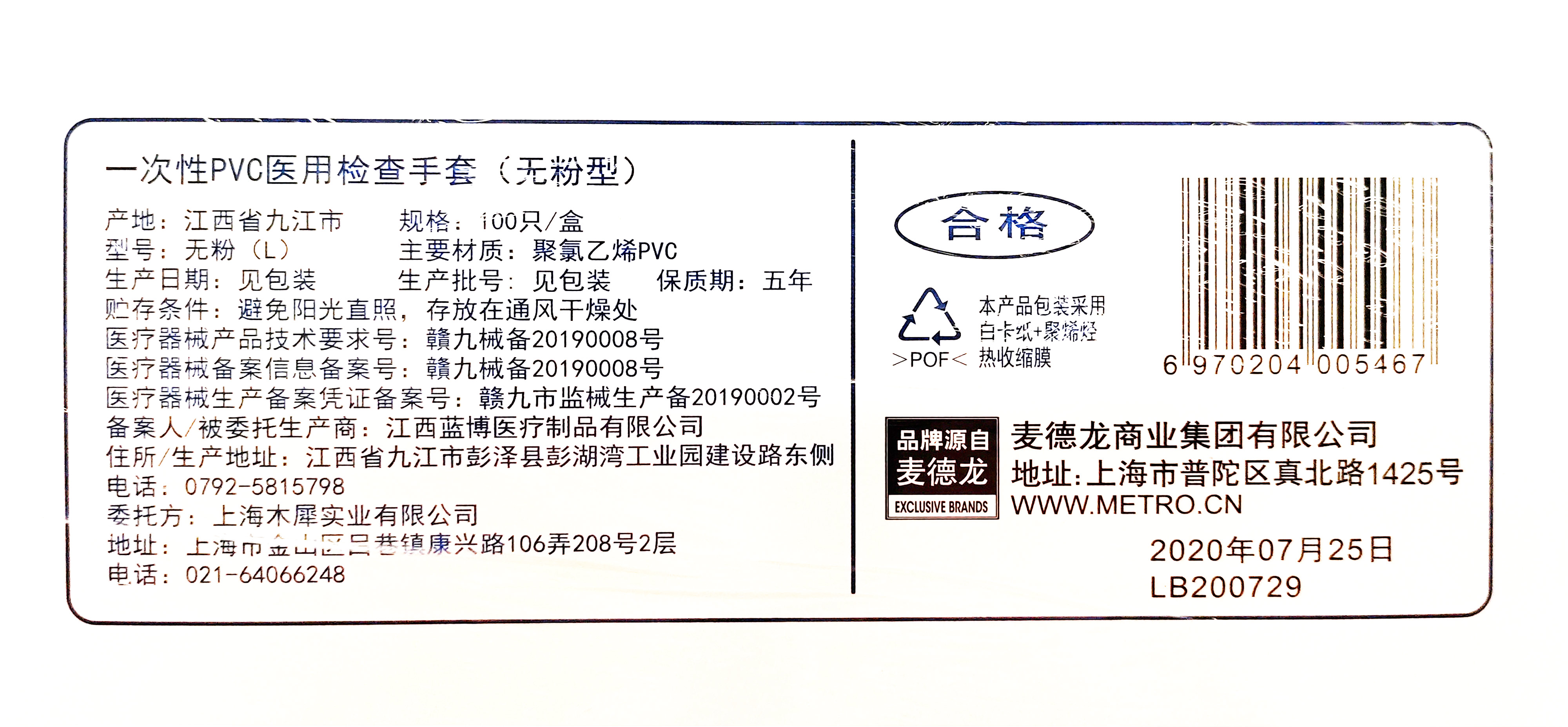 Metro Yike PVC powder-free food processing gloves baking disposable cleaning housework ML number 100