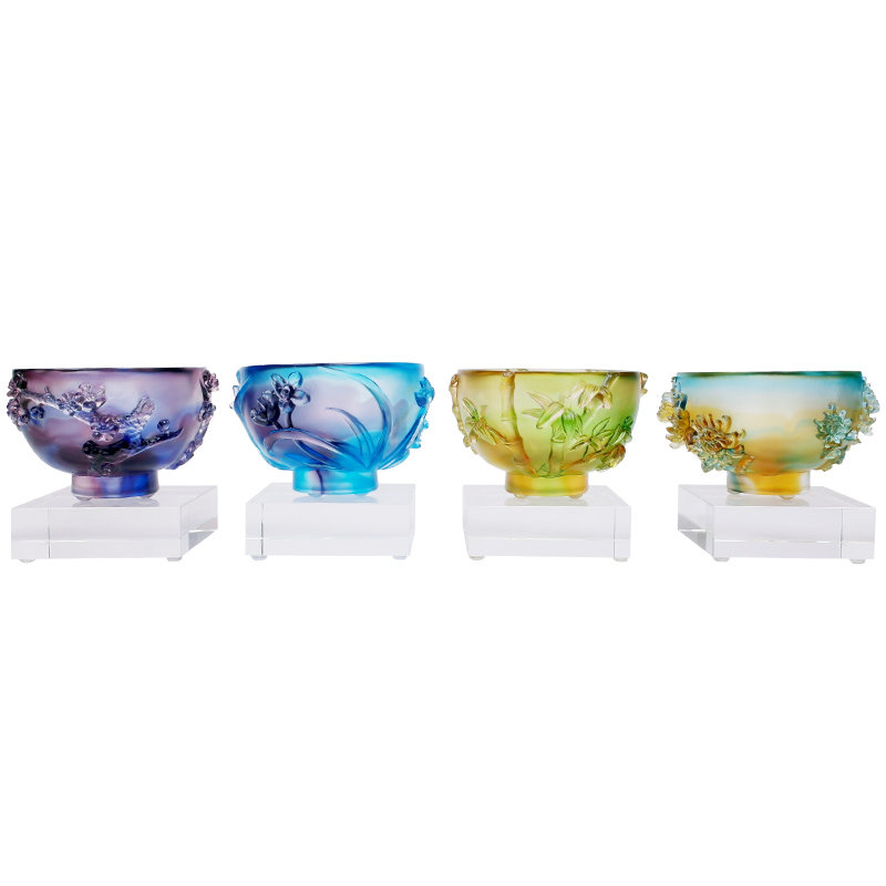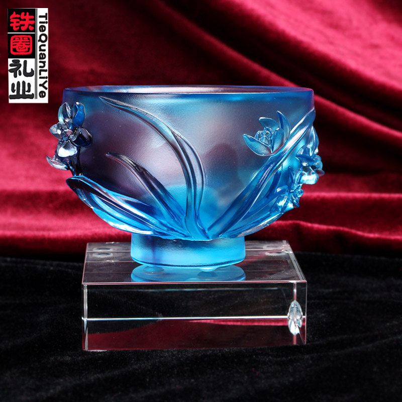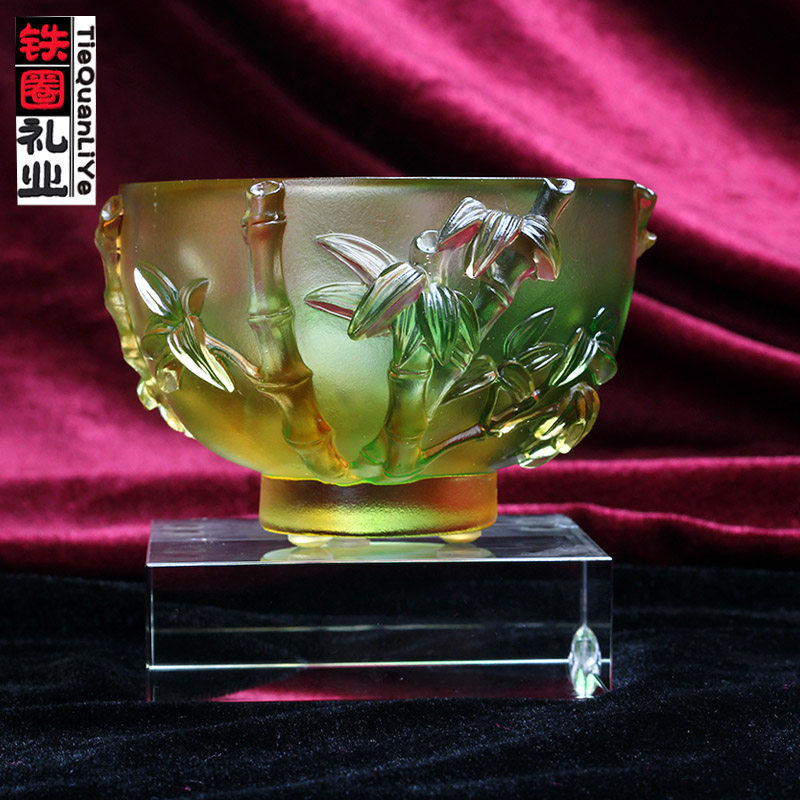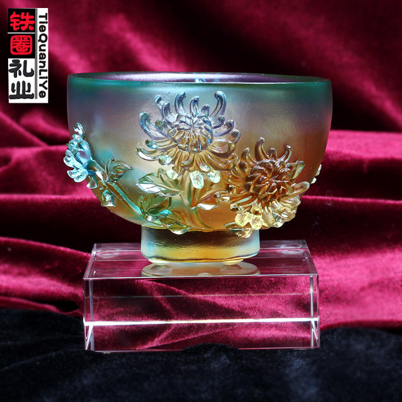 Iron ring gift industry plum orchid bamboo chrysanthemum bowl glass cup ornaments Chinese living room wine cabinet decoration art collection craft gift ornaments