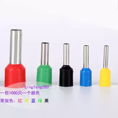 European E1008 tube type pre-insulated terminal 1 square pin wiring nose small black clip cold pressed copper end 1000