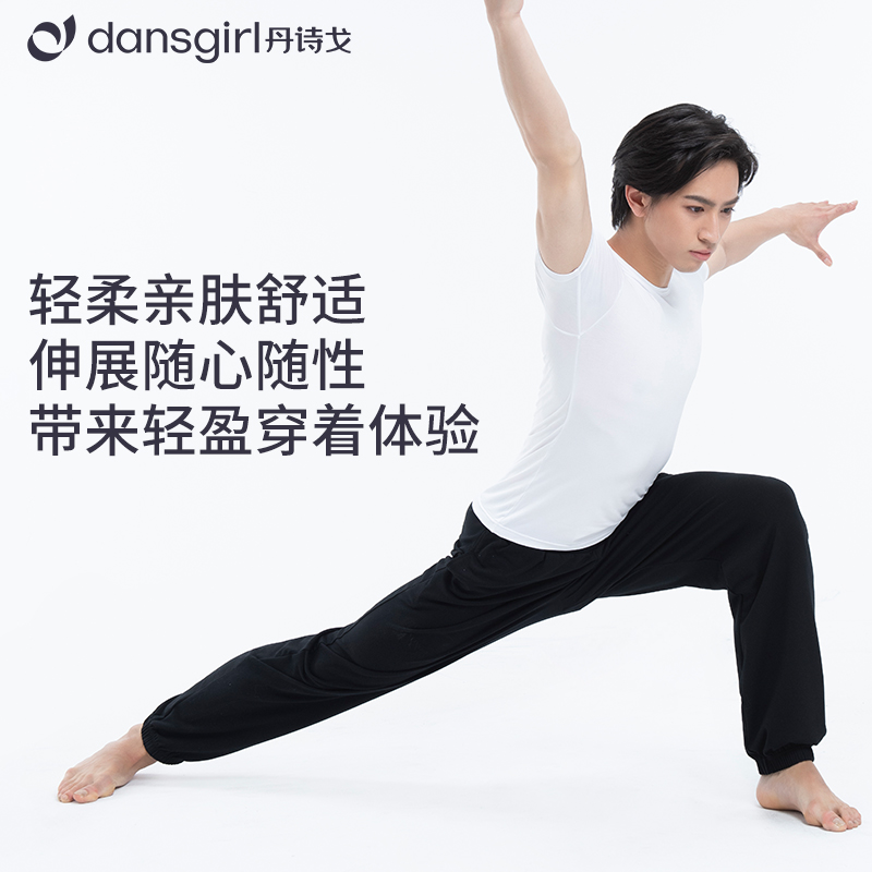 Danshige dance clothes men's dance tops exercise clothes training clothes mercerized cotton men's round neck short-sleeved black adult