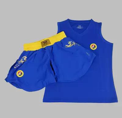 Jiuershan Sanda Suit Printing Dragon Tu Muay Thai training suit Short-sleeved shorts Sanda shorts New Sanda clothing Red and Blue