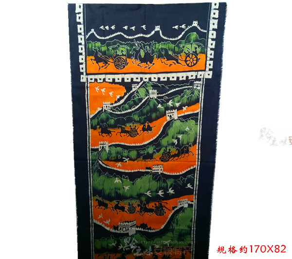 2022 Guizhou Anshun Miao ethnic artisanal wax dyeing and painting door curtain table cloth dining room Hotel Minjuku Guest House Decorative Background Wall