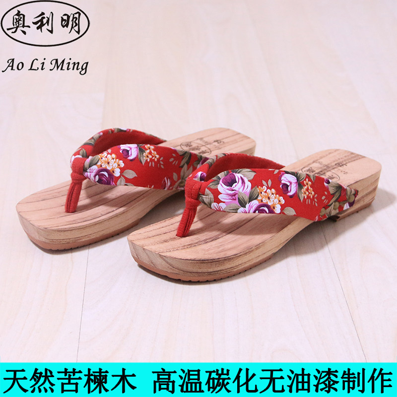 Olimin 2019 summer new slopes heel herringbone wood slippers female slippers Summer home sandals