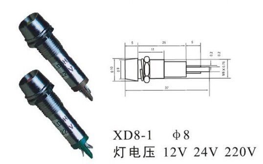 Signal light Indicator light XD8-1 Copper DC12V DC24V AC220V 8mm