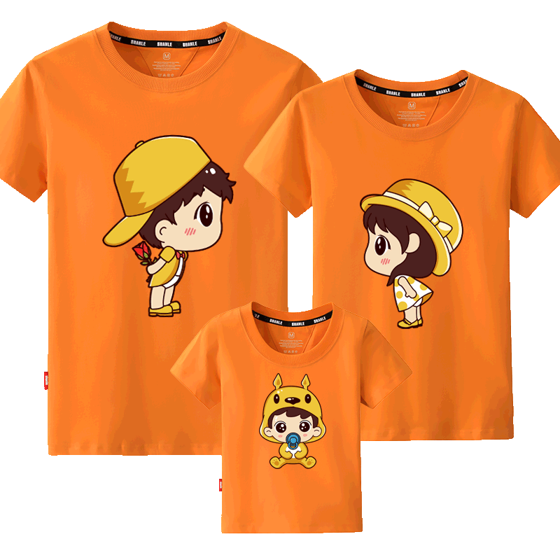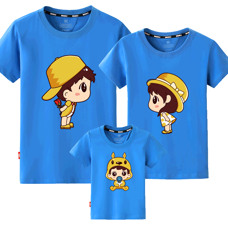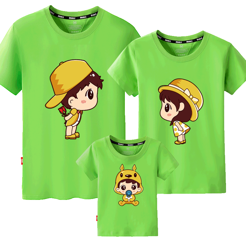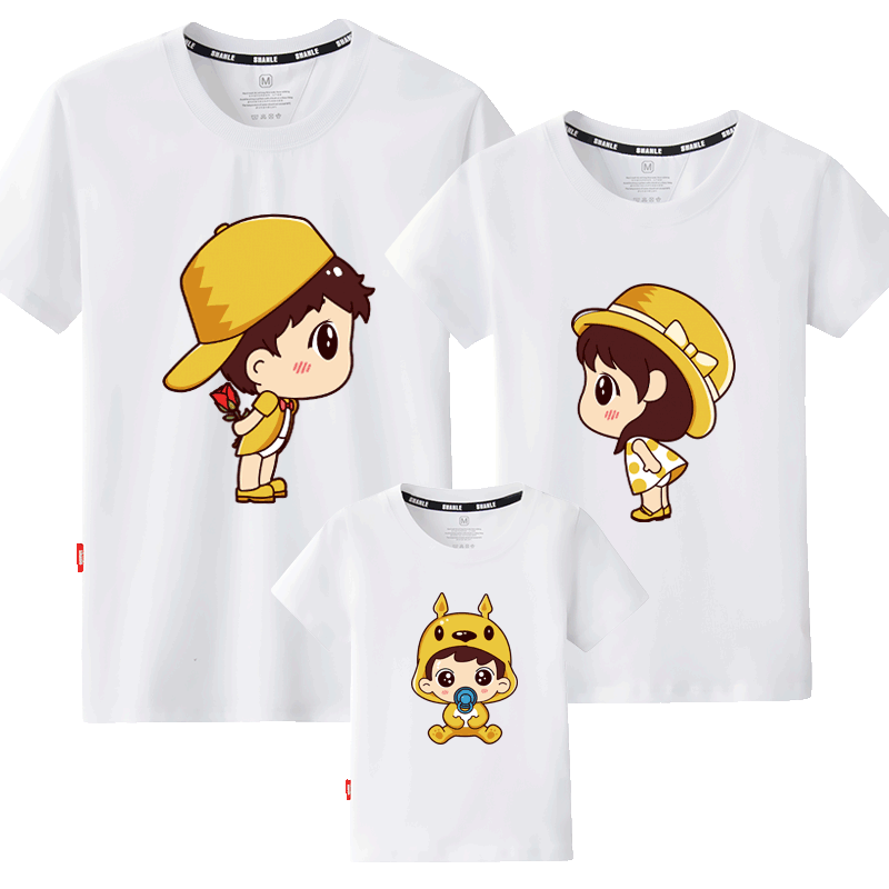 A family of three parent-child summer dress 2021 new fashion family dress mother-daughter mother-child pure cotton short-sleeved T-shirt Western style