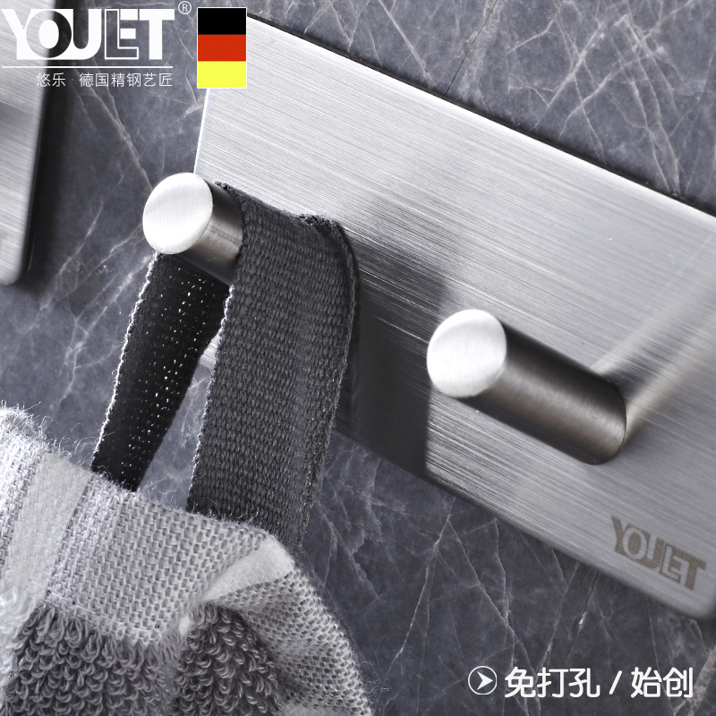 Powder room door back hanging hook row hook hole-free stainless steel bathroom bedroom coat hook hook hook Wall-mounted hook