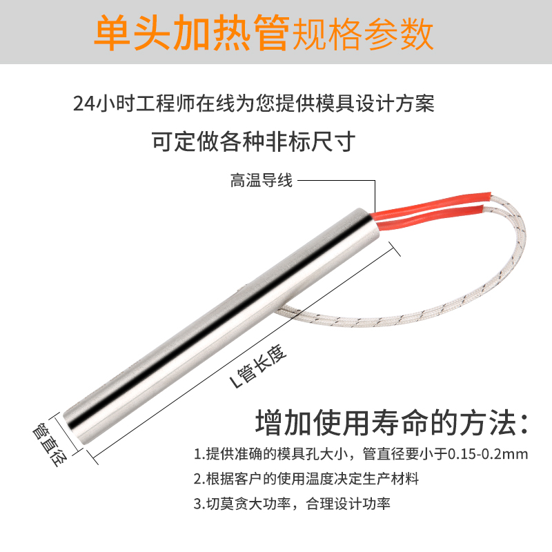 Single head heating tube Heating rod 380v electric heating tube Heating tube Custom 220v dry mold high temperature electric heating tube