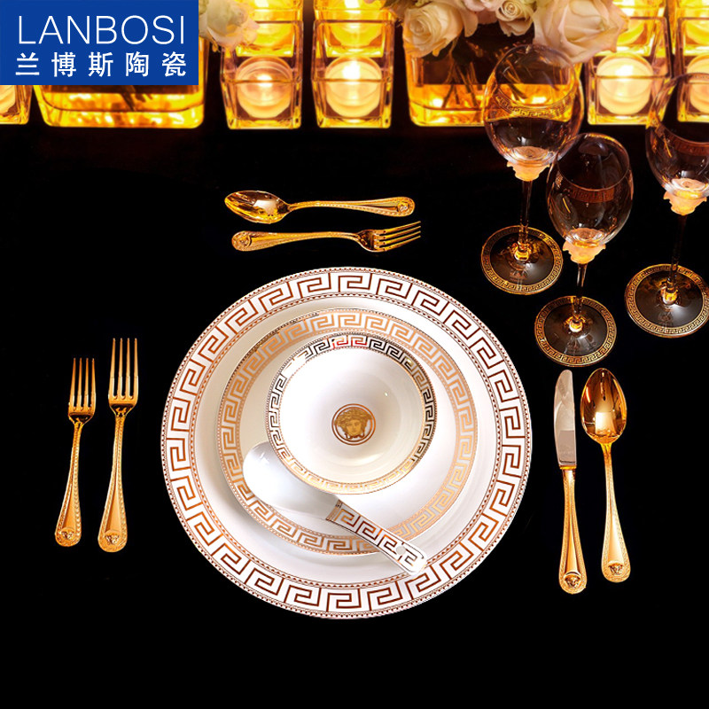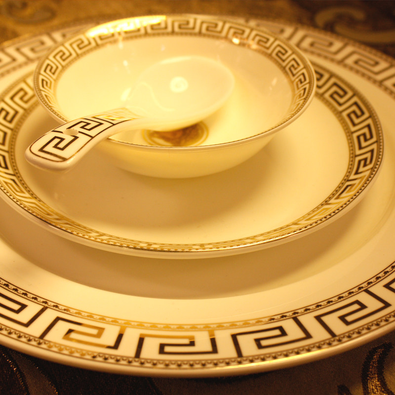 European tableware dish creative hotel restaurant supplies ceramic flat plate rice bowl bone china set dish dish