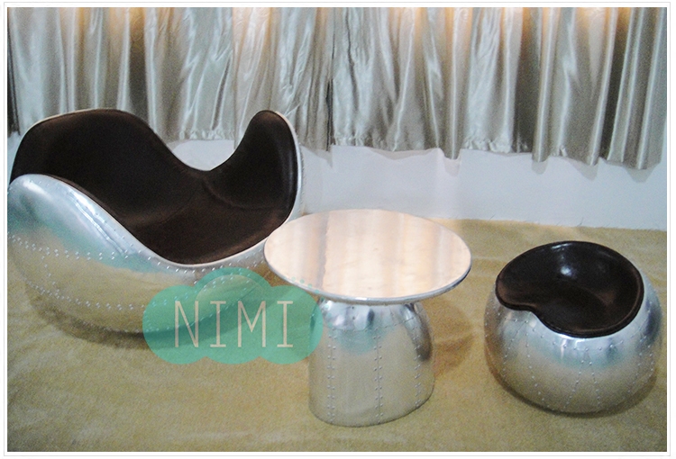 Round Lazy Sofa Chair glass steel chair retro personality Art Leisure Chair Aluminum Leather Leisure Chair