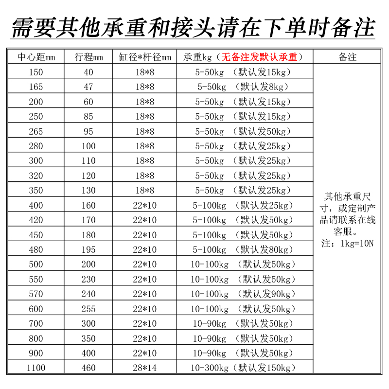 Centre distance 150*stroke 40*pressure(5-50kg) Center distance 165*stroke 47*pressure(5-50kg)Center distance 200*stroke 60*pressure(5