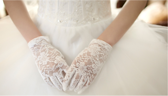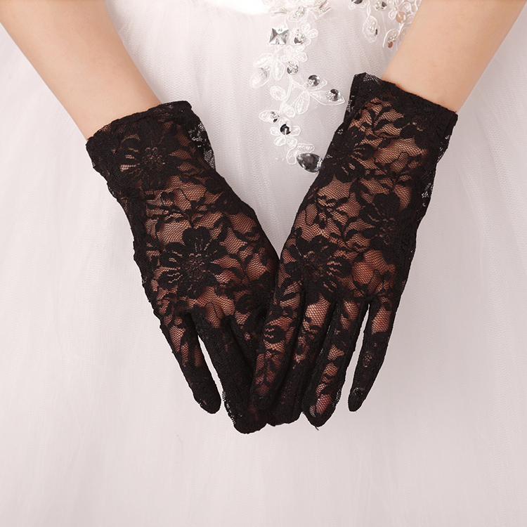 Performance short lace bride gloves wedding all finger wedding dress gloves mesh dress accessories White Red Black