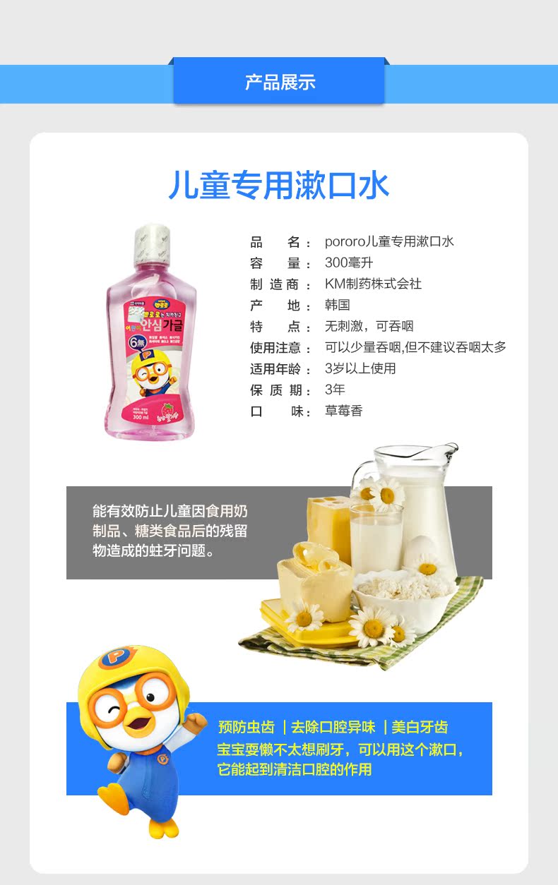 Korea pororo Po Lele little Penguin Children's tooth-free mouthwash Baby care brushing water Strawberry flavor