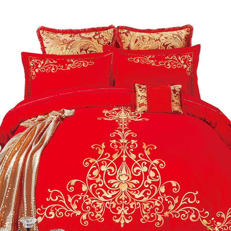 Yida Home Textiles Cotton Embroidery Red Wedding Six-piece Double Bedding Chinese Style