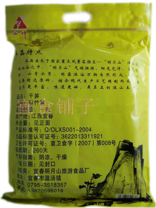 Jiangxi Yichun specialty Mingyue Mountain Shanshen first-class selected dried bamboo shoots food affordable 220g a pack