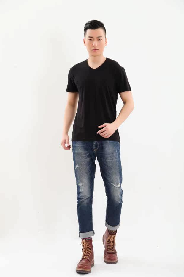 Men's gattening up for code short sleeves T-shirt pure color half sleeves leka cotton V collar workout lingerie black beating bottom