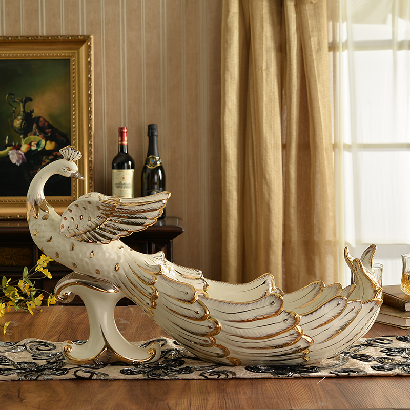European-style creative ceramic peacock fruit plate set Large fruit plate Luxury living room high-end coffee table ornaments