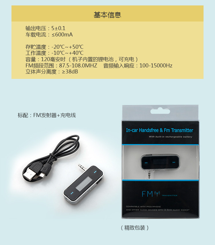 Car FM transmitter FM transmitter MP3 wireless transponder Mobile phone GM hands-free call