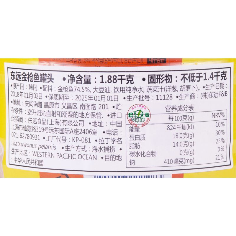 1 pot of Korean imports Dongyuan tuna 1880g Oil-soaked canned salasushi Rice Agribusiness Food