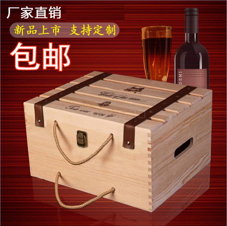 Red wine box Six-pack red wine wooden box Packing box Red wine wooden box 6-pack solid wood wine box Red wine gift box custom
