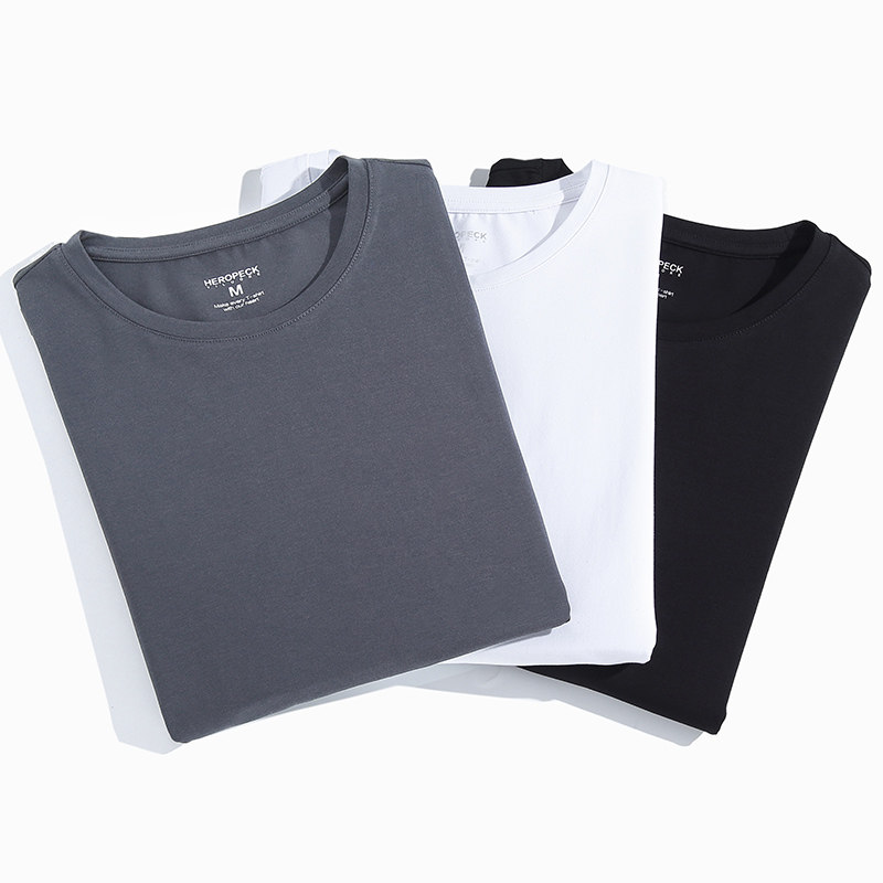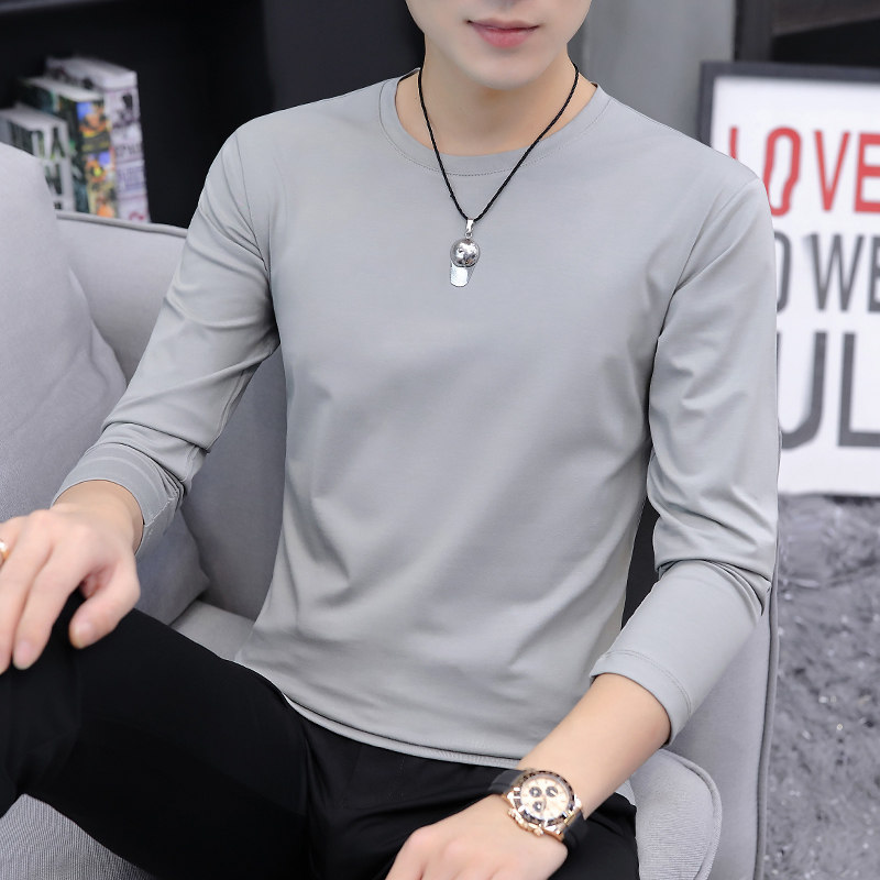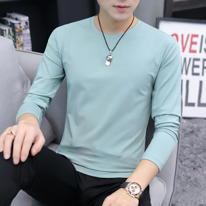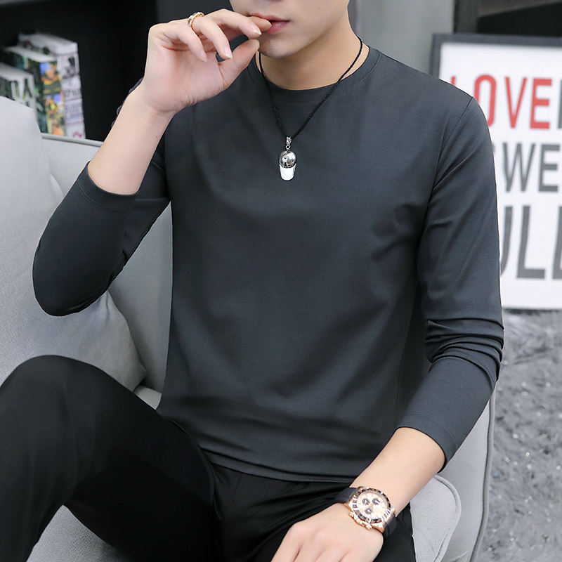 2 pieces) pure cotton men long sleeves T-shirt round neckline trends 100 lap up clothes men's clothing autumn clothes pure color T-shirt autumn clothes