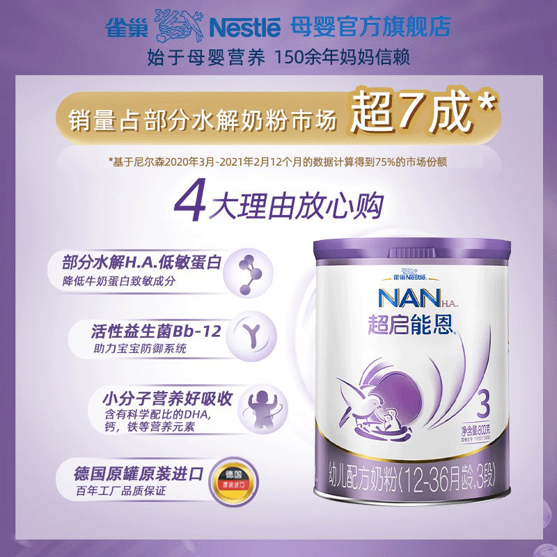 New customers minus 10 Nestlé official flagship store Super Qinen 3 Super Nengen 3 stage milk powder moderate hydrolyzed milk powder