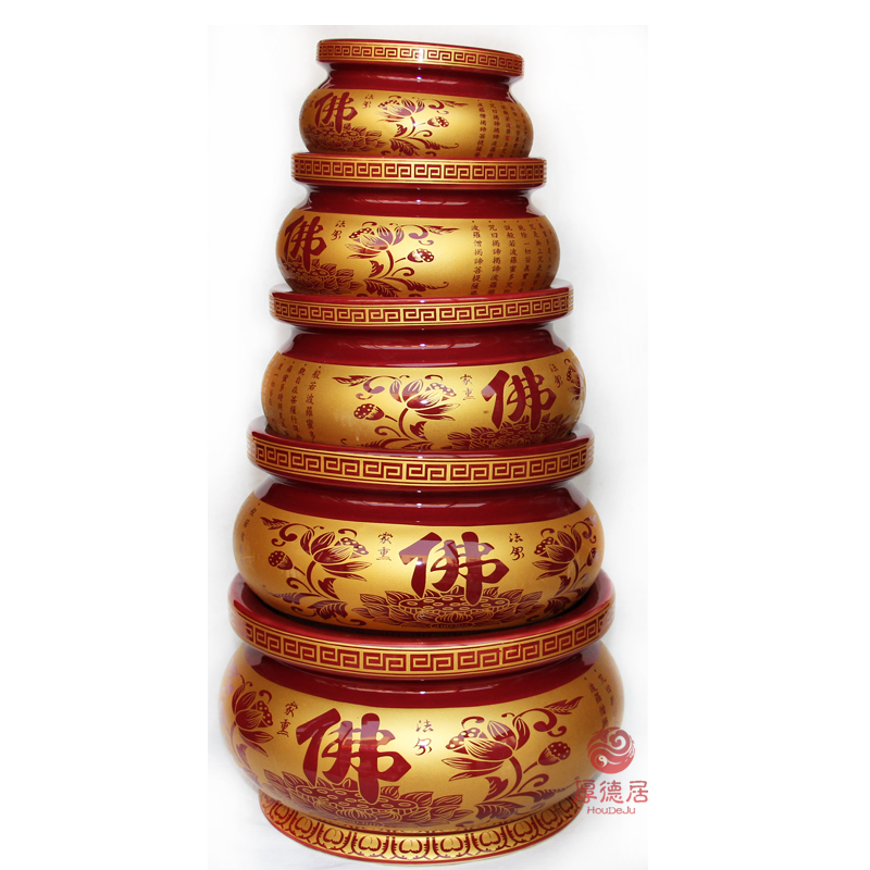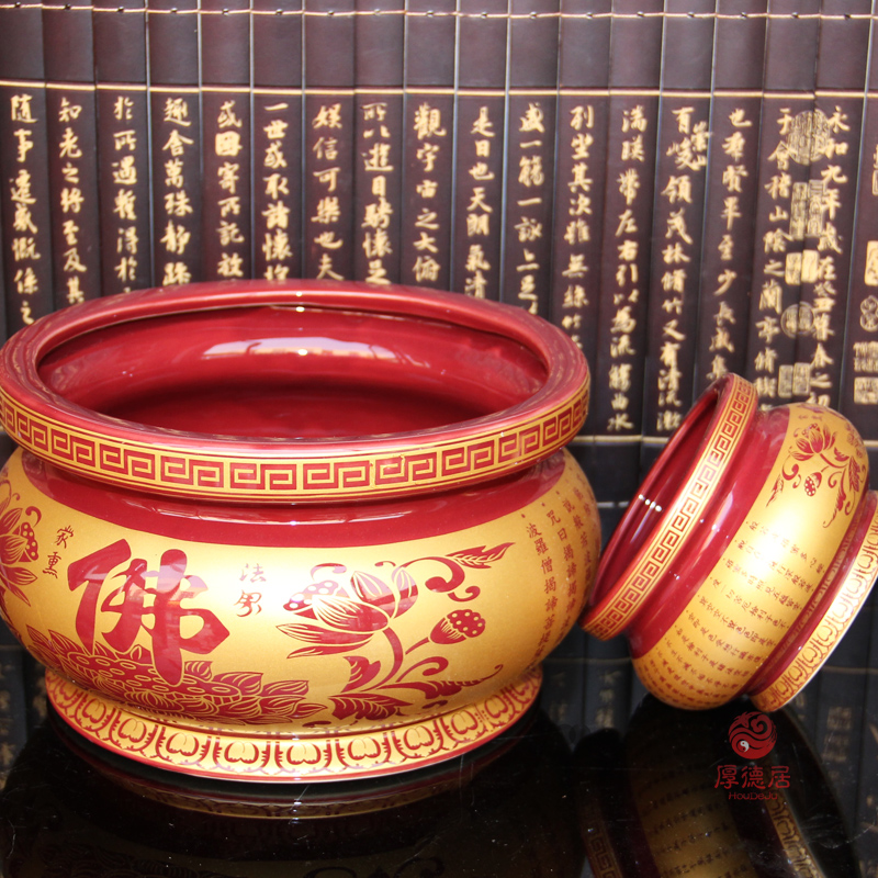 Houdeju Buddha supplies incense burner red glaze Buddha character Heart Sutra round mouth incense burner ceramic Buddha tools