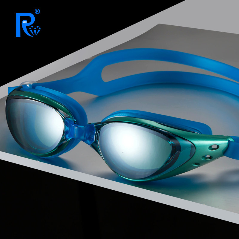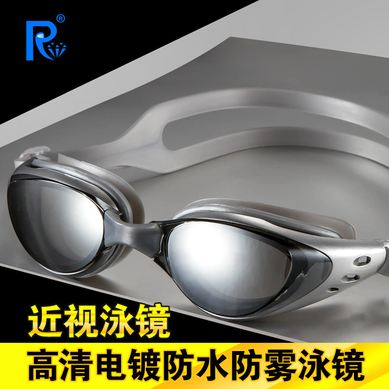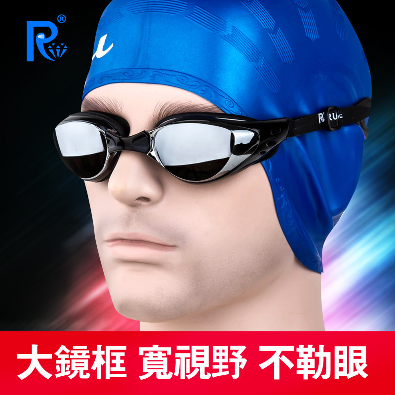 Rui and the new men and women large frame electroplating flat light swimming goggles high-definition myopia waterproof and anti-fog diving swimming glasses