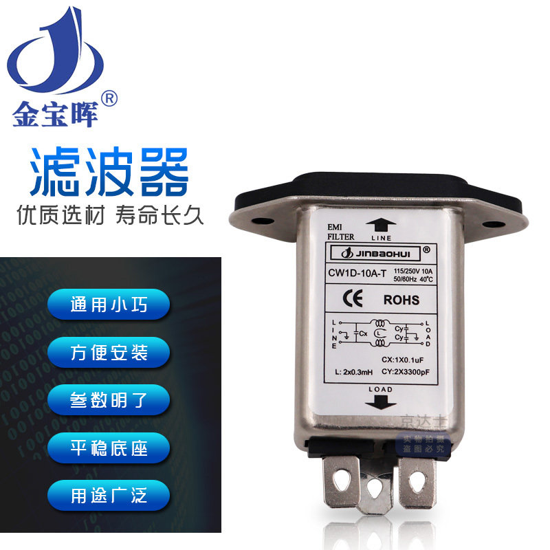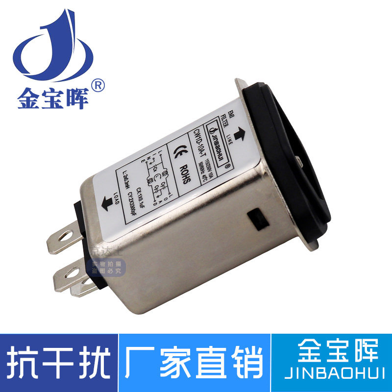 Original Jinbaohui EMI power filter CW1D 6A 10A socket 3 purification interference T single-phase AC 220V