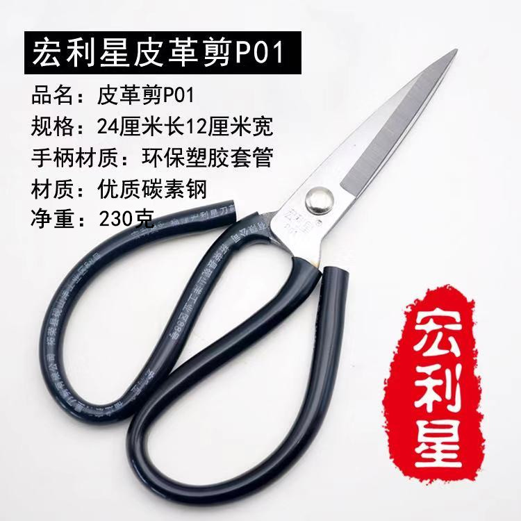 Honglixing P01 leather scissors industrial household civilian iron - skin large black stainless steel rubber plastic